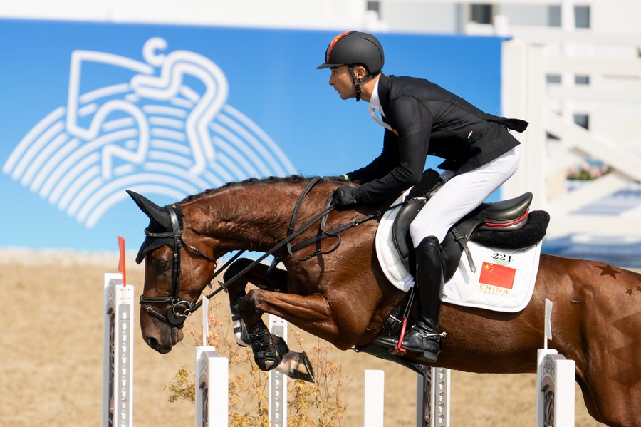 Chinese rider Alex Hua Tian in action during the Eventing Individual competition at Hangzhou Asian Games, Oct. 2, 2023. (Xinhua/Wei Peiquan)