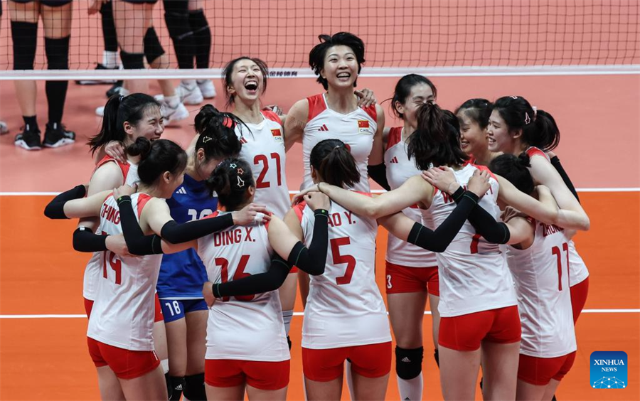 Team China compete during the Women's Gold Medal Match of Volleyball, Oct. 7, 2023. (Xinhua/Zhang Tao)