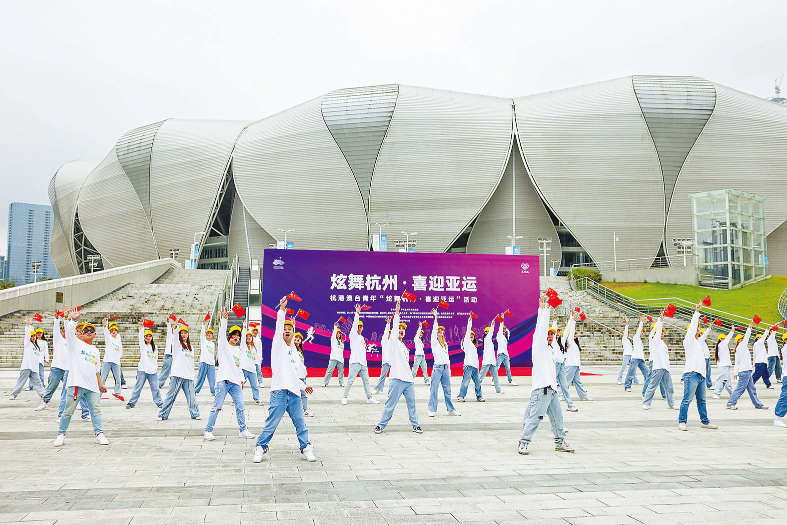 Teenagers dance to Welcome Asian Games