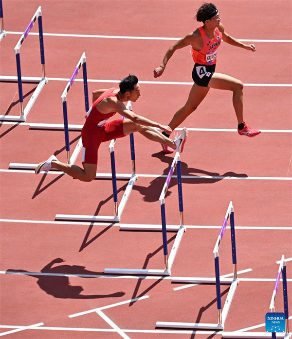 The Women's 400m Hurdles Heat of Athletics at the 19th Asian Games in Hangzhou, east China's Zhejiang Province, Oct. 2, 2023. (Xinhua/Sun Fei)