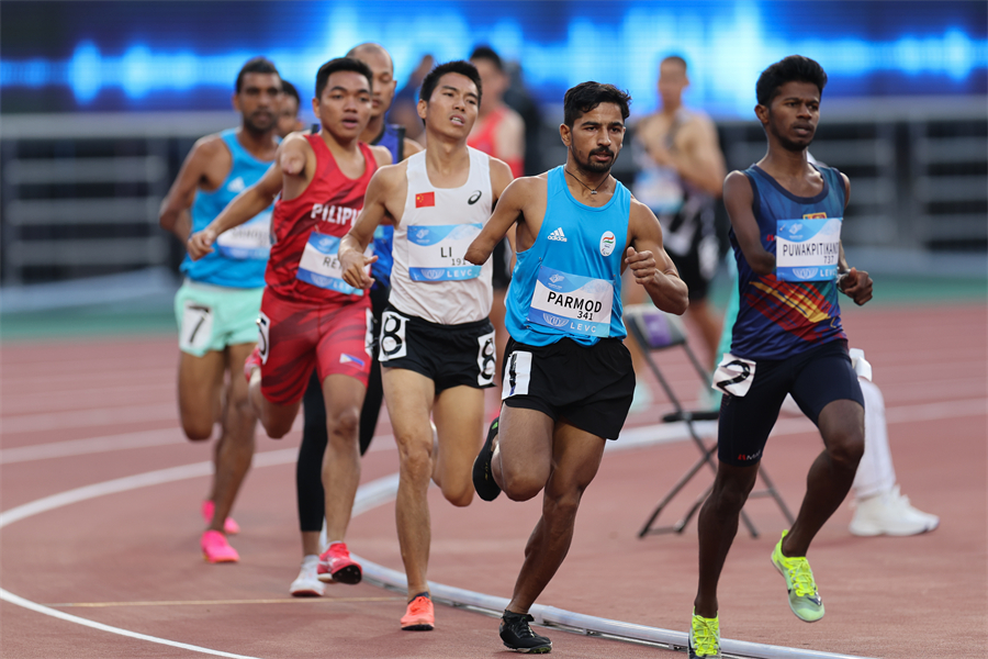 田径男子1500米T46决赛 斯里兰卡选手普拉迪普·索马西里·普瓦克皮蒂坎德·沃姆普拉格刷新亚残运会纪录摘金