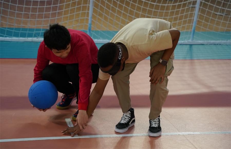 同样,戴上特制眼罩训练也成为对他们的一大挑战。“光是一直在全黑环境下待着就特别不容易,更别说保持身体平衡和进行激烈对抗了。”八年级女生Helen(金芮西)感慨。