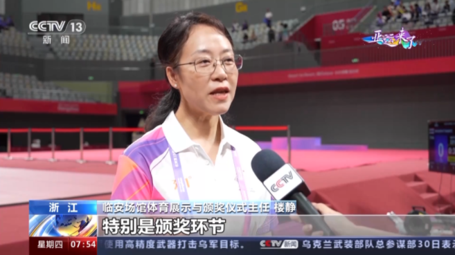 临安场馆体育展示与颁奖仪式主任 楼静:30日进行了全要素的演练,特别是颁奖环节严格按照亚组委的政策和程序执行,确保颁奖能够呈现出零失误、高标准,为运动员呈现一个最好的高光时刻。