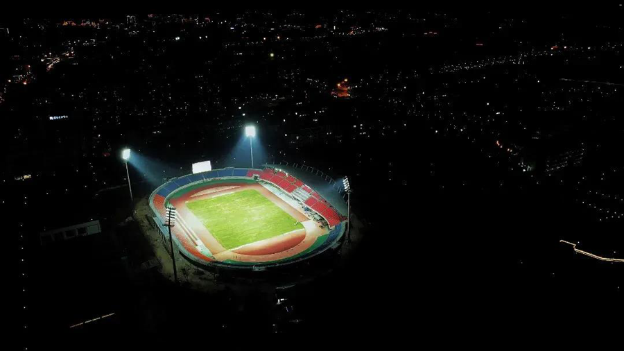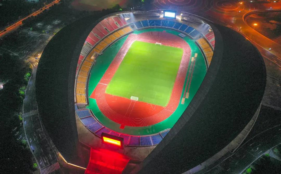 2020年6月18日,金华体育中心体育场进行了首次灯光测试。