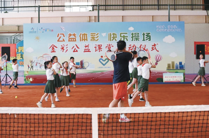 日前,金华体彩公益课堂结对仪式在金东区火山网球馆启动。金华体彩与金东区第二实验小学结对,向该校捐赠了网球等体育器材,并对该校首批20名学生进行为期两周的免费网球培训。