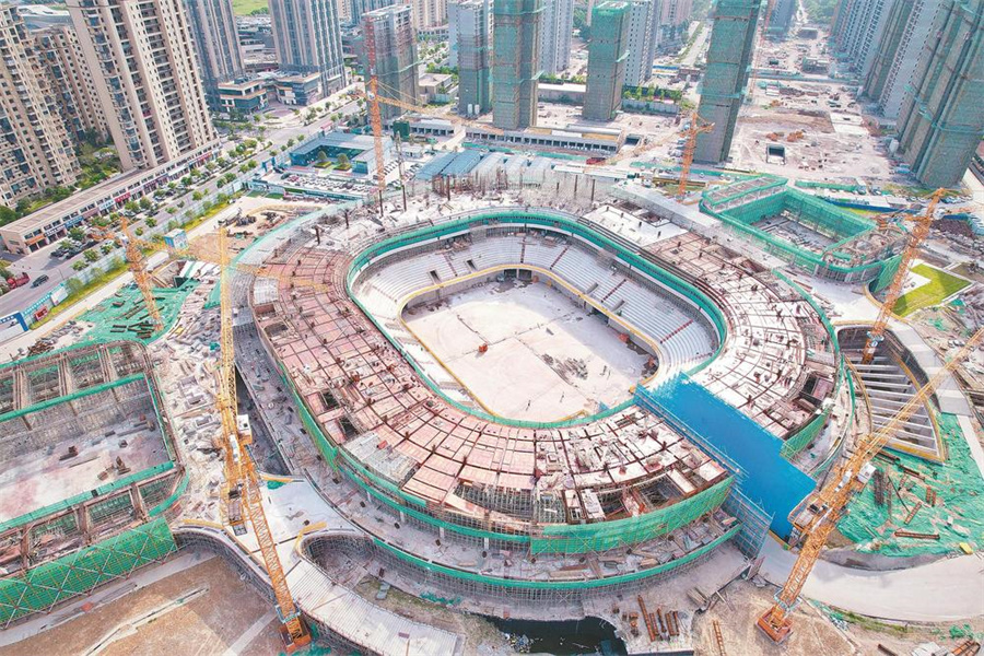 图为省“千项万亿”工程诸暨篮球中心项目建设现场