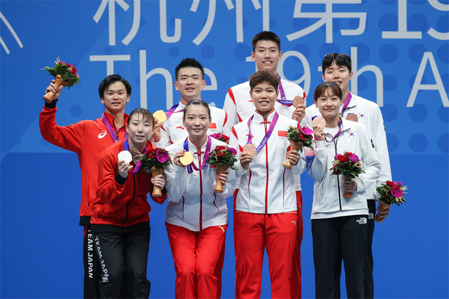 2023年10月7日,杭州第19届亚运会羽毛球混合双打颁奖仪式举行。