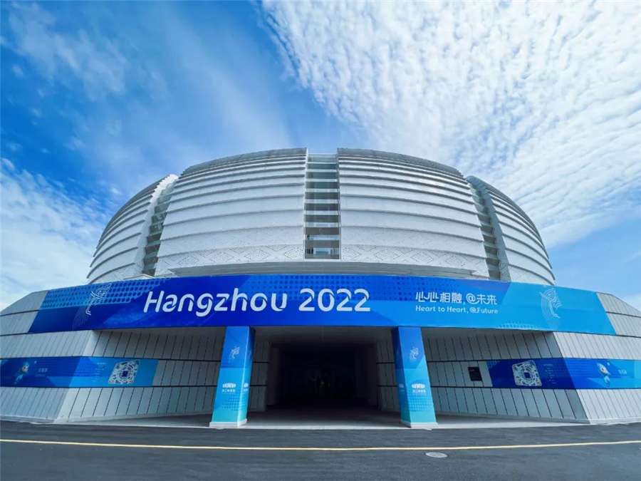 滨江体育馆又称“小白碗”,位于杭州滨江区996号。场馆于2017年落成并投入使用,可容纳观众4000人,是杭州亚运会、亚残运会羽毛球比赛场馆,到时将分别产生7枚和22枚金牌,有着世界级羽毛球比赛灯光系统、8K高清摄像头、观众席通风系统等多项亚运“黑科技”,是名副其实的高科技场馆。