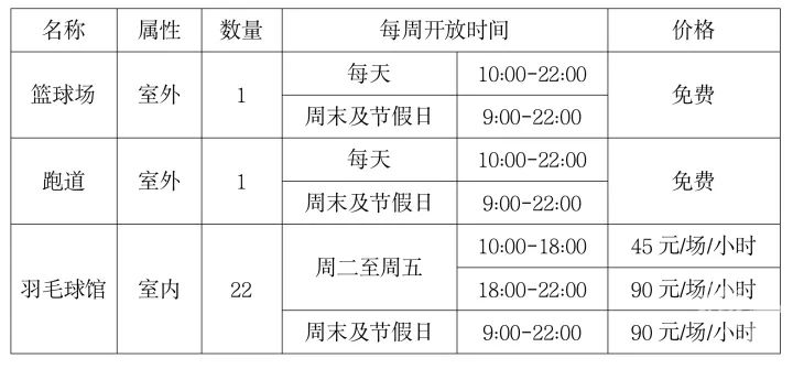 具体开放时间及价格标准如下: