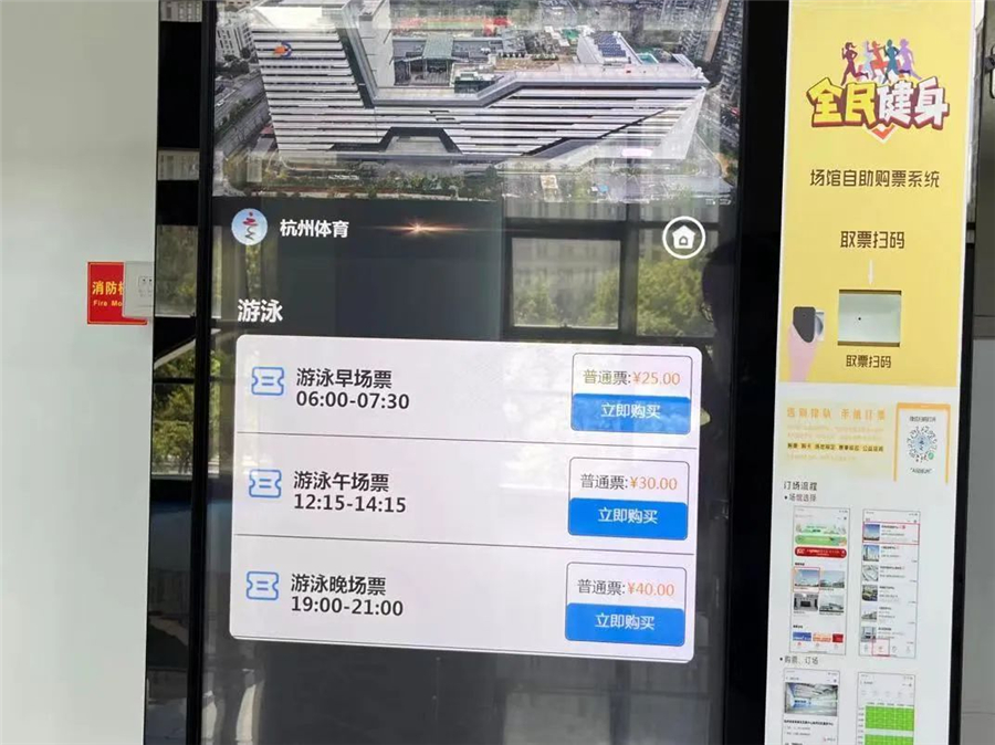目前,游泳馆开放时间分为早场、午场和晚场,价格也非常实惠,早午晚分别是25元、30元和40元,前来游泳的市民可以通过网上购票,也可以在现场的售票机中购买。