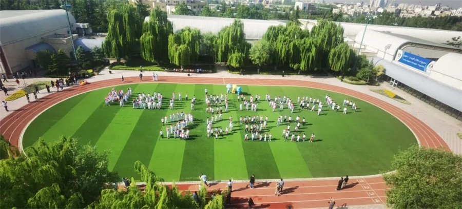 参加活动青少年从起点出发,围绕着伊朗奥委会学院总部大楼一周,返回到体育场中央,一路上大手牵小手,一幅和谐温暖的景象。