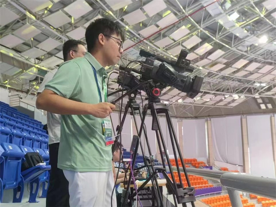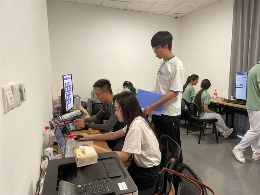 “您好,这里是浙江工商大学文体中心IT支持帮助台,请问有什么可以帮到您?”伴随着电话铃声的响起,信息技术领域进入日常工作节奏,他们不仅负责比赛技术统计、成绩信息处理、成绩分发,同时还负责网络安全、竞赛仲裁录像、竞赛视频的管理、监测无线电频率资源的使用情况。此外保证场馆内AGIS专网和IT设备的正常运行也是他们日常工作中的一部分。响应和处理问题他们分秒必争,时刻准备着为场馆提供专业可靠的服务。