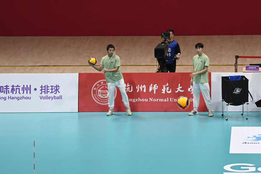 杭州师范大学学生洪怡庭直言:“器材组需要时刻关注赛场器材情况,及时补给。在卢老师的指导下,我们逐渐熟悉了排球等器材检测,一丝不苟、井然有序是我们器材组的日常,现在我们每一个人都成为可以独当一面的器材室管理员,可以处理许多突发情况,这也让我成就感满满!”