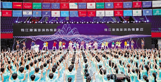 8月24日,杭州亚运会倒计时30天,杭州亚运会、亚残运会赛会志愿者出征仪式在浙江大学紫金港校区体育馆举行。 本报记者 魏志阳 姚颖康 摄