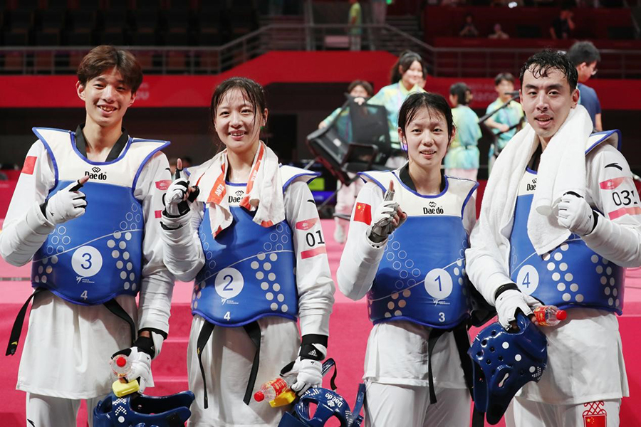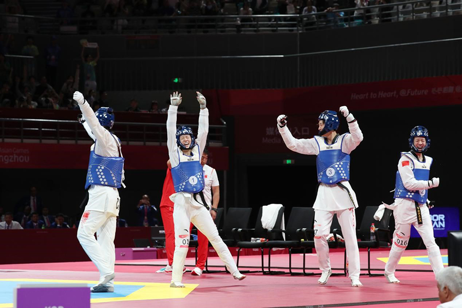 击败老牌劲旅韩国队 中国队斩获跆拳道混合竞技团体项目金牌
