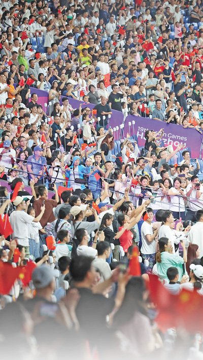 亚运会比赛精彩不断,不少体育爱好者从各地赶来,一睹参赛运动员的精彩表现。体育爱好者韦龙宇从北京来到杭州,观看了板球和七人制橄榄球项目比赛。“中国女子橄榄球队在决赛中表现优异,尤其是在下半场敢打敢拼,值得点赞。这种拼搏和团结协作的精神深深感染了我。”韦龙宇业余时间在运营新媒体,推广橄榄球运动。他说:“希望这项运动能够借助亚运会的平台,进一步被大家了解、喜爱。”