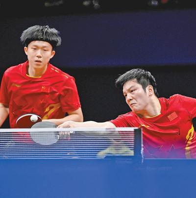 10月1日,杭州亚运会乒乓球项目男子双打决赛,中国体育代表团组合樊振东(右)/王楚钦夺得金牌。新华社记者 王鹏 摄